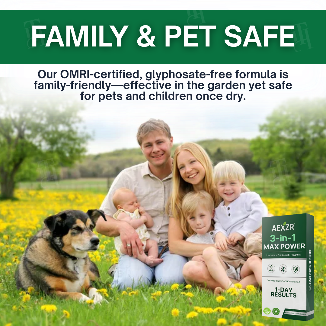 AEXZR® 3-in-1 Max Power Herbicide is the revolutionary solution designed to eliminate tough weeds and protect your garden from harmful pests—all in one powerful application. Unlike traditional herbicides that take weeks to show results, our advanced formula works quickly, delivering visible effects within hours while maintaining the highest level of safety for your family, pets, and the environment.