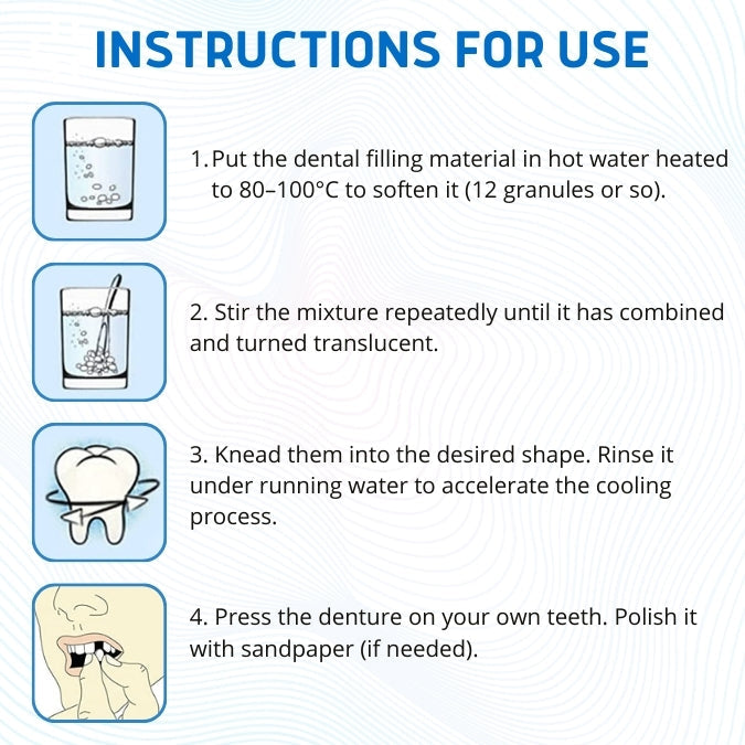 Simply heat the beads in warm water, mold them to your teeth, and enjoy a natural-looking smile. The thermal forming process guarantees a precise fit without hassle!