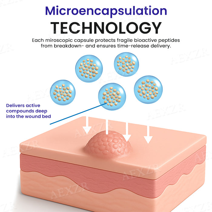 Microencapsulation technology then releases these actives gradually over time, creating a sustained therapeutic effect that continues to work long after application—without irritation or overexposure.