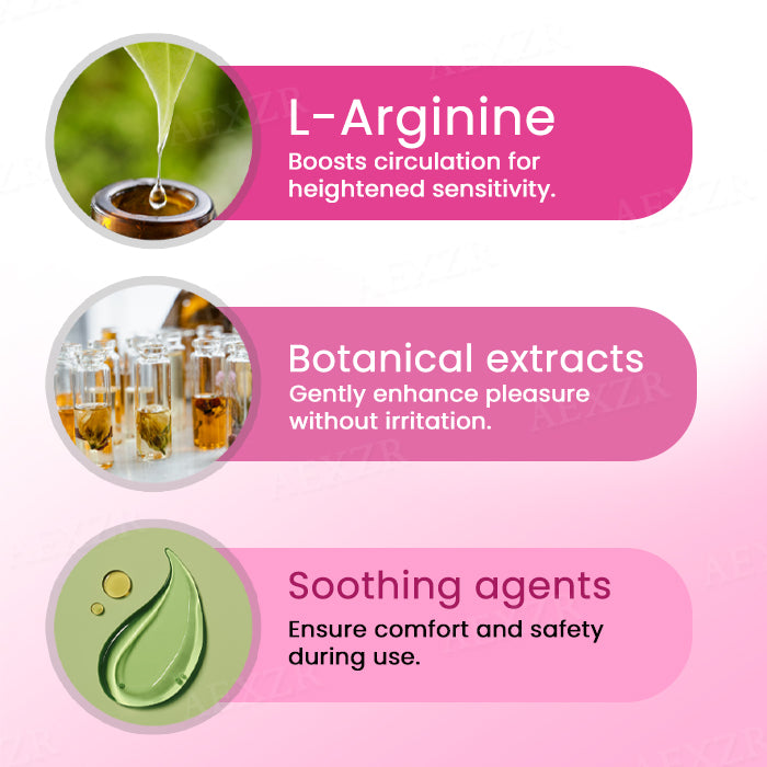 - Enhances sensitivity: PiguiayÂŽ gently boosts blood flow and nerve responsiveness, helping her feel every touch more deeply.